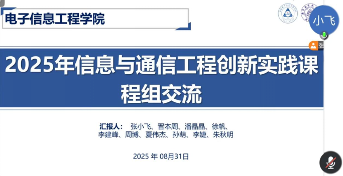 为推动落实创新实践课程具体实施、提高学生的实践能力与创新能力,8月31日晚,电子信息工程学院就信息与通信工程创新实践课程的设计与实施展开了具体研讨。副院长张小飞、院长助理夏伟杰、信息与通信工程系副主任晋本周、信息工程专业执行负责人周博,教师代表朱秋明、李婕、李建峰、潘晶晶、徐帆、孙萌等参与本次会议。会议由张小飞主持。
