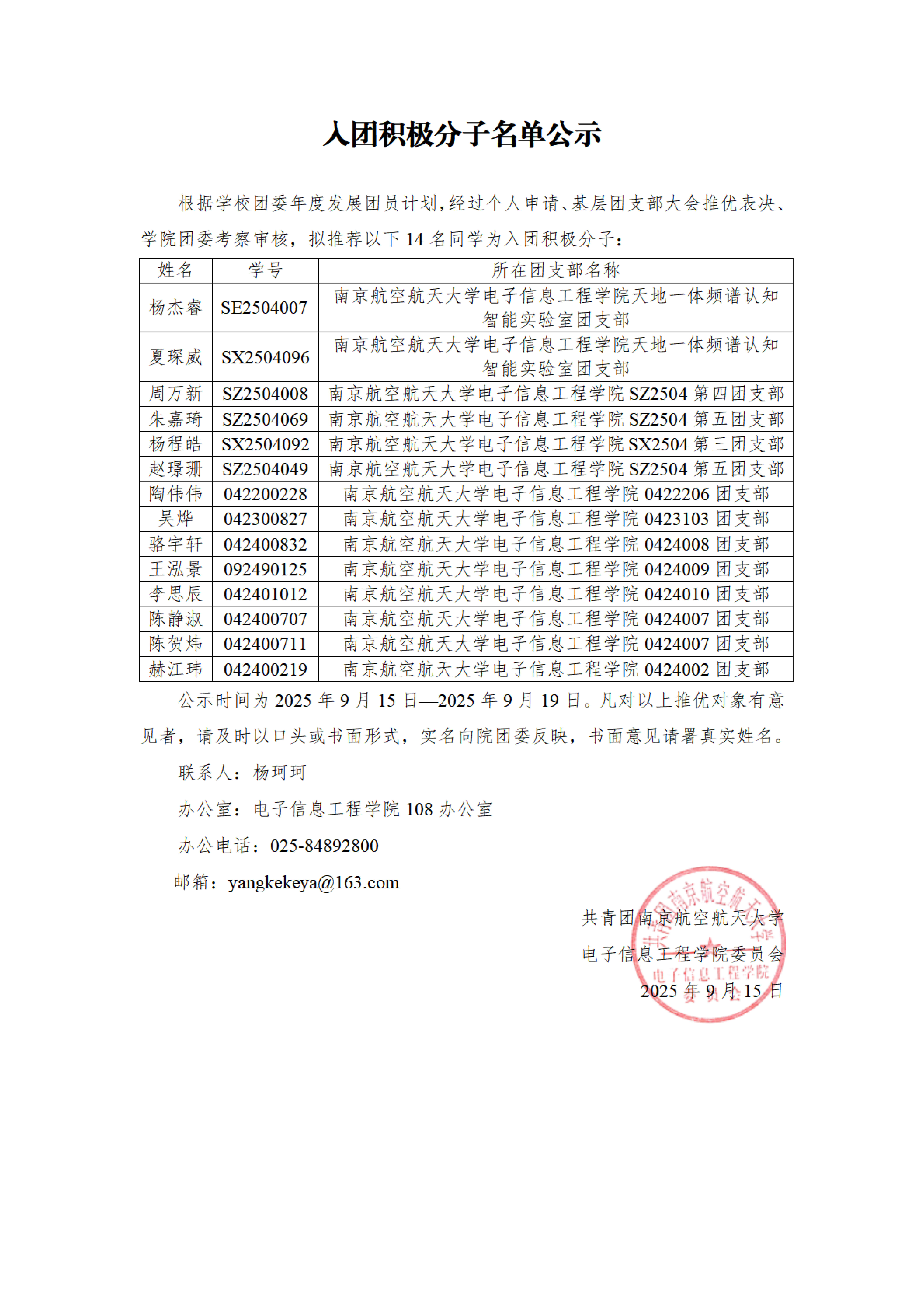 关于电子信息工程学院2025年下半年入团积极分子的名单公示