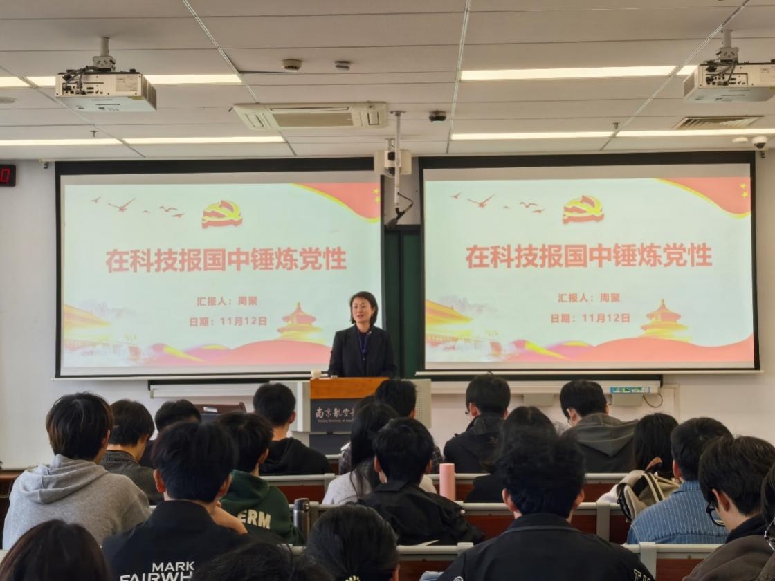 季海群在电子信息教育基地带来“学党史、书院史,做先锋、共发展”实境党课。他将党史精神传承与学院发展历程深度融合,紧扣“电子信息”“空天报国”学科特色,通过历史溯源、成就展示、使命解读,让学员们在沉浸式体验中明晰“学党史以明方向、书院史以强根基”的深刻内涵。课程旨在凝聚学员“做先锋勇担当、共发展启新程”的奋进力量,推动党建与学院发展同频共振,为培养电子信息领域报国英才筑牢思想根基。
